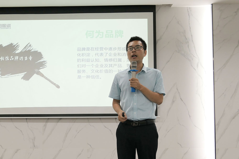 最后,由集团市场部高级讲师邹志辉老师作《品牌文化介绍》课题分享,邹老师以“何为品牌、品牌存在理由”两个问题开场,引人深思,继而从“品牌概况、品牌发展历程、终端店面标准、终端帮扶体系、工程实力展示”五大方面展开深度剖析金樽陶瓷的品牌文化、品牌优势,使得在场人员更加了解金樽陶瓷,为终端传递金樽陶瓷的品牌故事,提升终端对金樽陶瓷品牌认知。