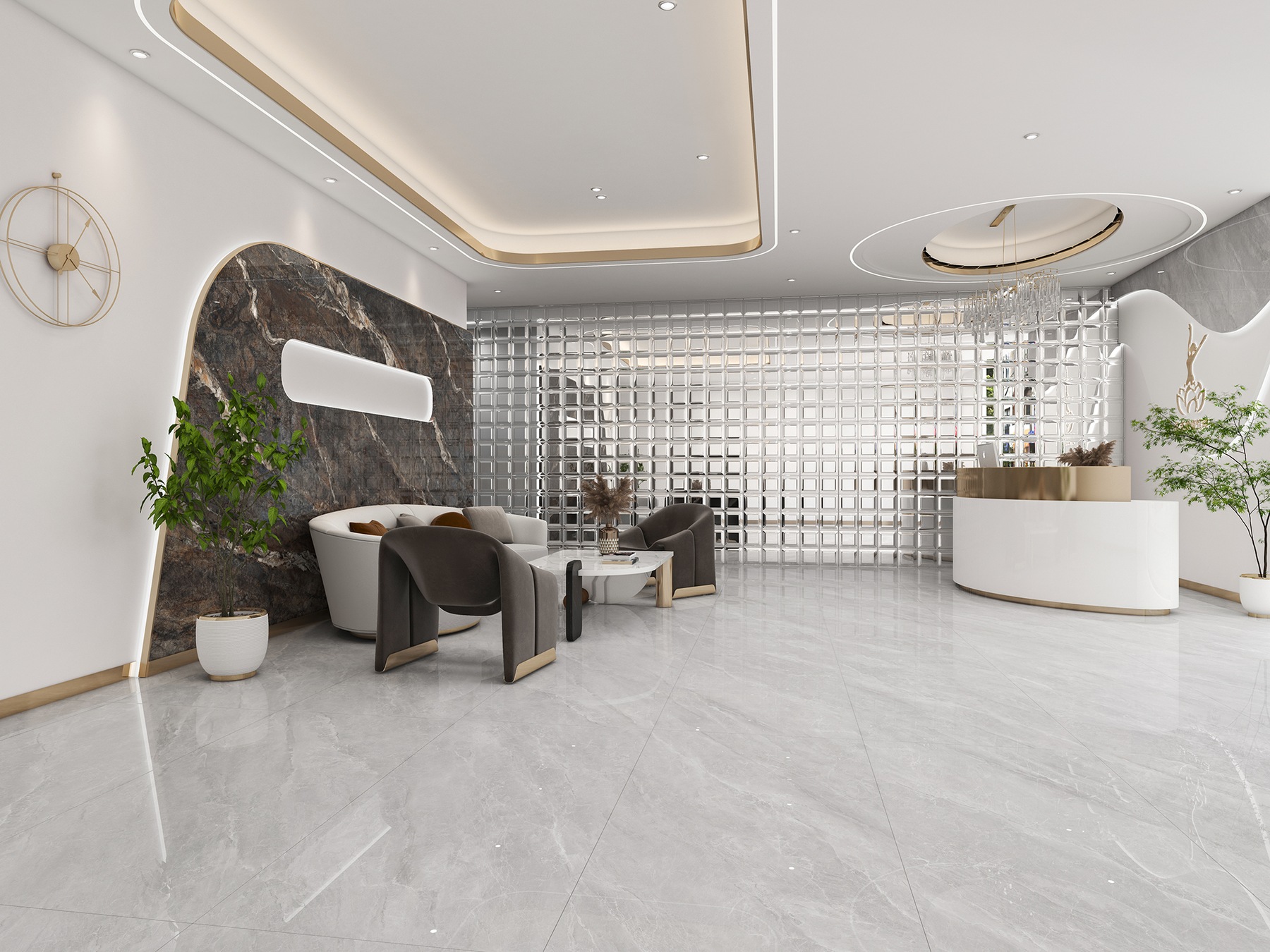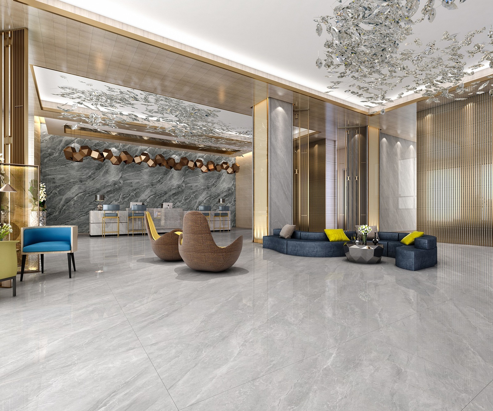 浅灰色泽素雅宜人,延绵不断的纹理,极富冲击的视觉感染,大大延伸空间纵深感,带来大自然流动的生命力和艺术美感。