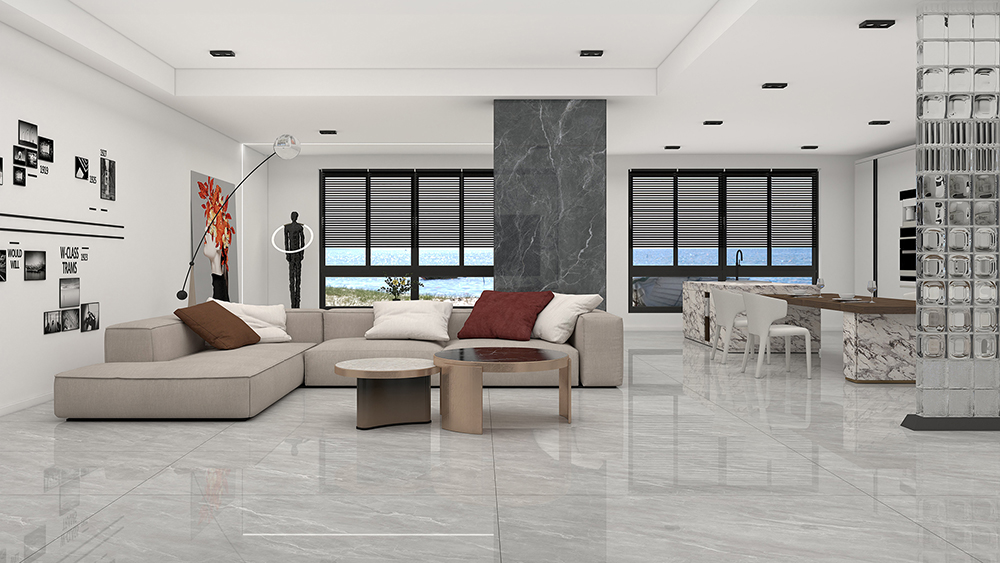 在色彩和纹理的表达上,奥斯特灰大板较为温和,在大面积铺贴时能够很好地营造静谧优雅的氛围,让空间更舒适又不失亮点。