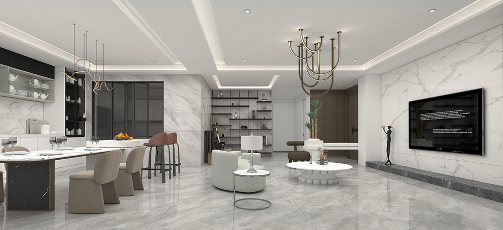 斯奈儿灰大板汲取威尼斯水城蜿蜒柔和的浪漫美感,流畅的波浪纹理加上略带暖灰的色调,带来庄重而雅致的视觉体验,逼真的大理石纹理充满梦幻感,让空间充满低调的浪漫情感。