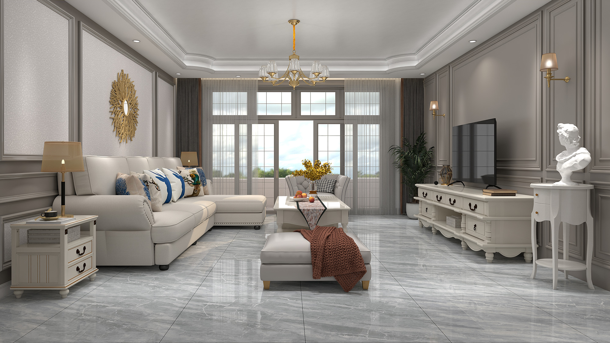 优雅时尚的诺尔曼,精致细腻的纹理,温润如玉的质感,清澈透亮的色泽,搭配轻奢风的家具,彰显出一份唯美的温馨与浪漫。