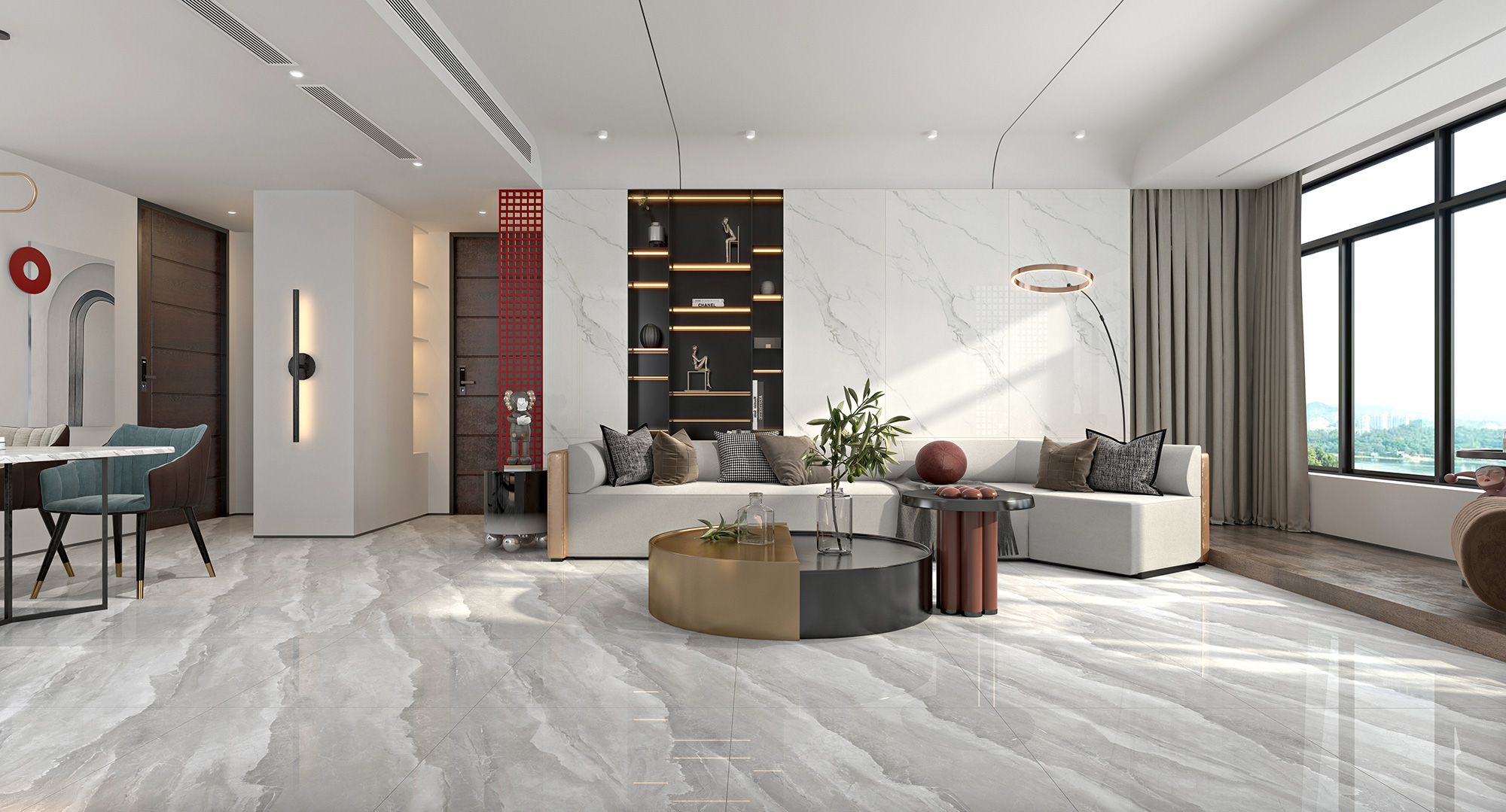 要想拥有一个精致的居所,可以通过运用软硬装的设计与搭配来布置空间,色泽柔和、纹理灵动的流山云海,使空间整体看上去更具时尚的韵味。