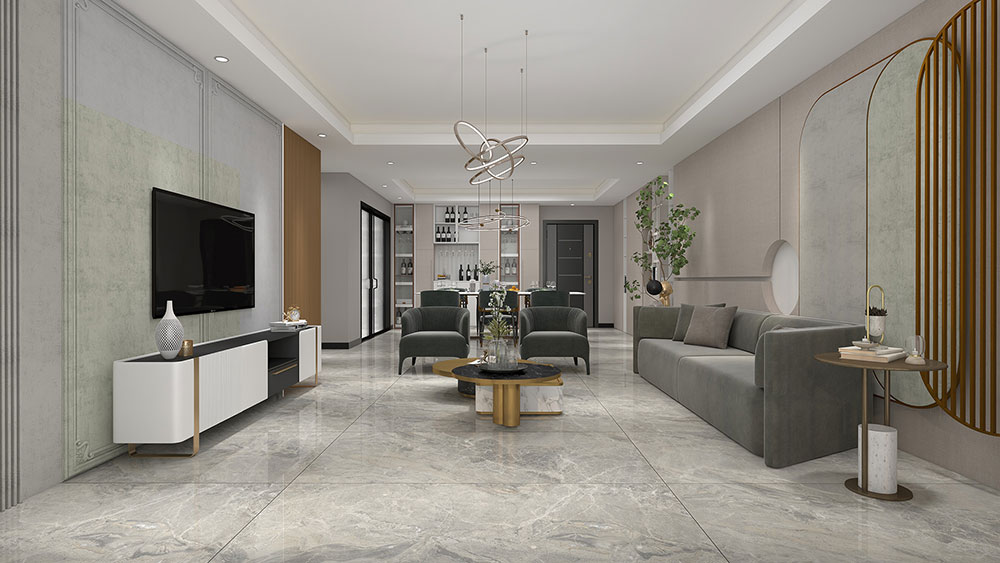 在客厅空间中,云山雾里大板显得大气高雅。现代的家具搭配温柔的灰色调,精致又时尚,让整个空间充斥着现代感。