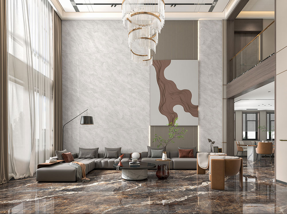 金樽陶瓷,750*1500mm大板 柏拉图灰,加持通体连纹工艺,以纯净的配色与浑然天成的线条,赋予生活律动,来呈现一个更深层次的居住空间:有温度、有场景、有活力、有灵魂。