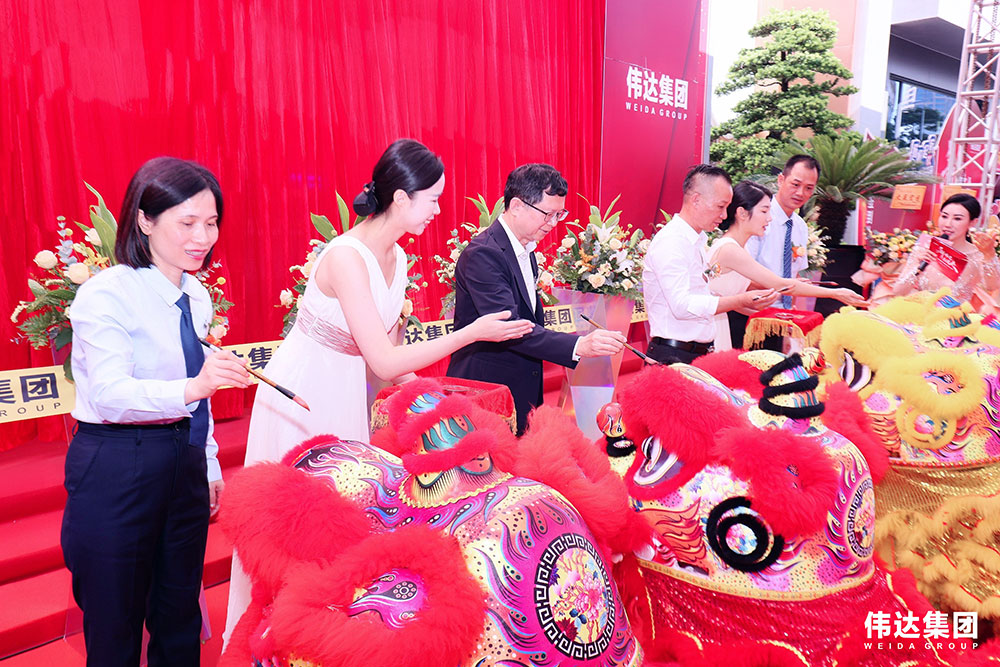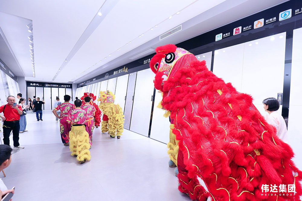 在四方宾朋,八方来客的共同见证下,由伟达集团副董事长冼国信、广东省陶瓷协会会长陈环、伟达集团销售总经理李达仁与伟达集团财务总监阮燕青为祥狮点睛,寓意伟达集团生意蒸蒸日上!