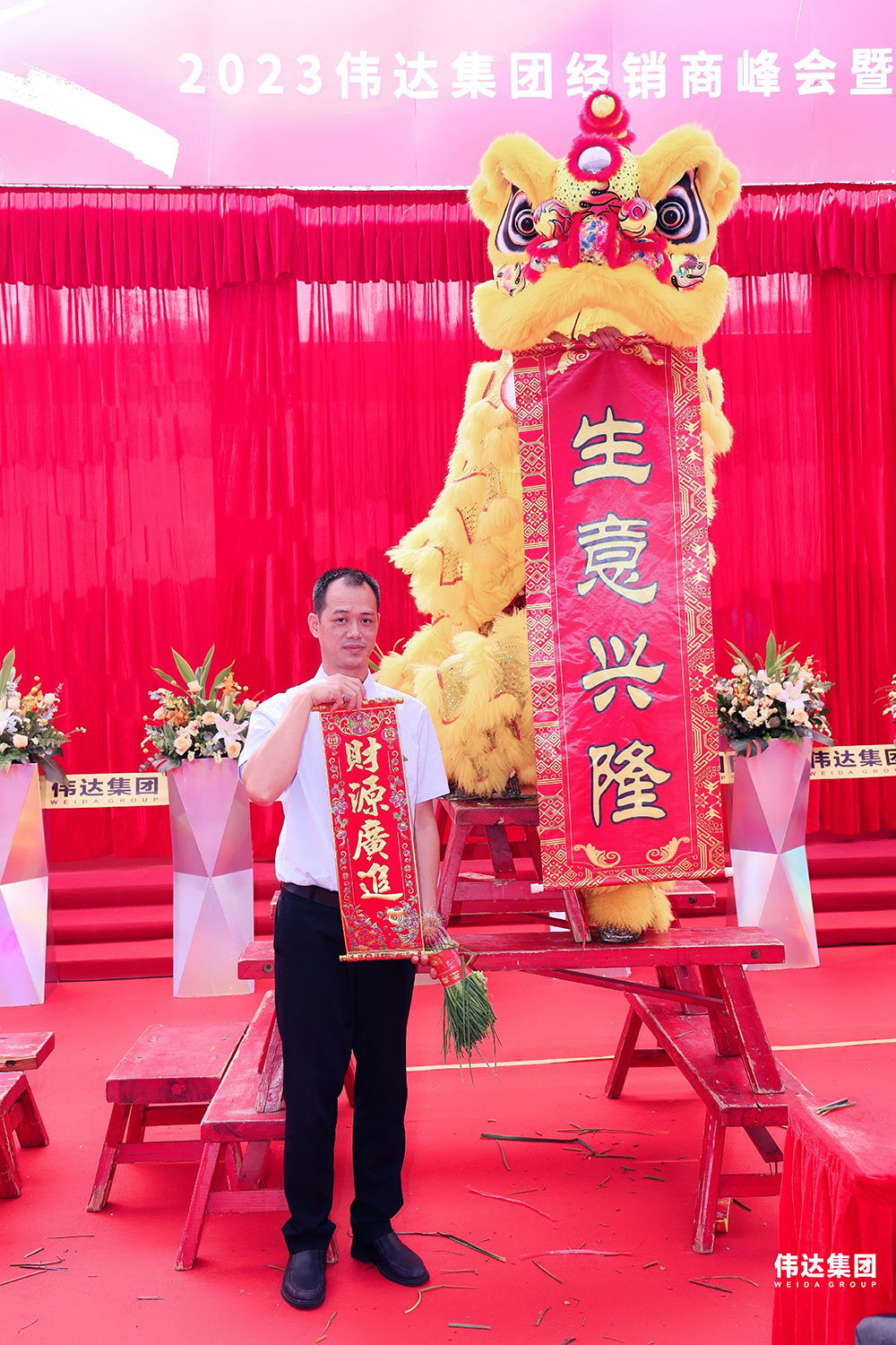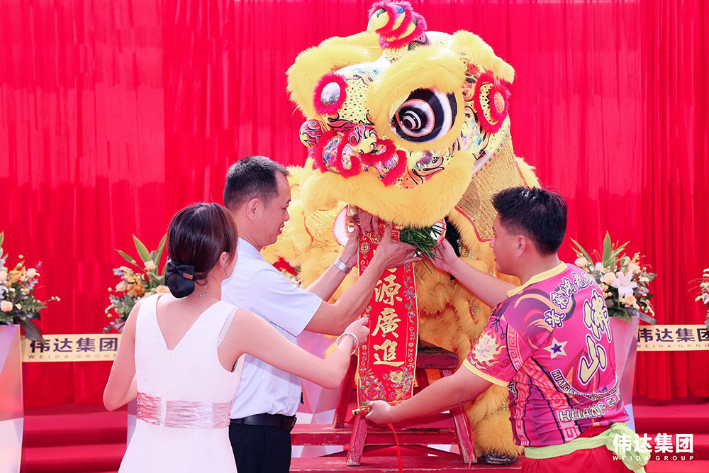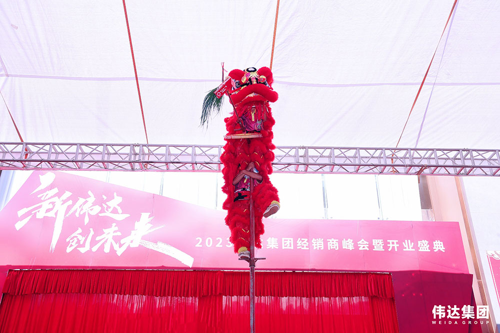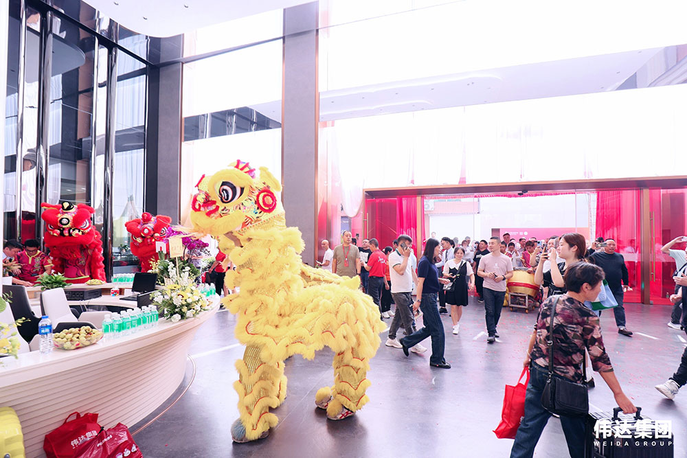 随着锣鼓声响,瑞狮欢腾跳跃在伟达集团总部新展厅门前,唤醒的狮子登高采青,寓意着伟达集团未来红红火火,财运亨通,事业兴旺,财源滚滚!同时也为伟达集团带来鹏程万里、前程似锦的美好祝愿!