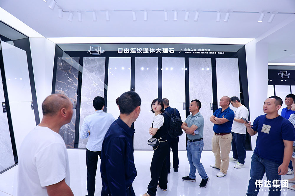 随后,伟达集团销售总经理李达仁先生向各位来宾详细诠释伟达集团品牌未来发展新格局。李总表示,此次新展厅的设计和展推产品都彰显出伟达集团的高端品质与强大的自主研发实力。为了更好地服务市场、终端及消费者,伟达集团致力于产品创新,推出全规格、全工艺子母配套产品、干粒釉、肌肤釉、岩板、中板通体大理石等优质产品,并进行有效推广和定位,将产品不断升维!